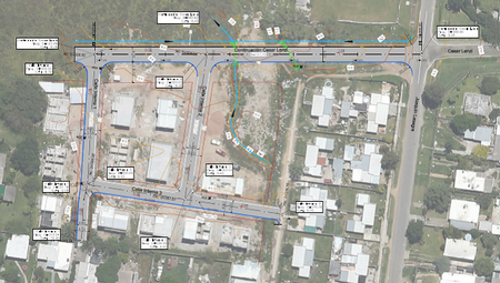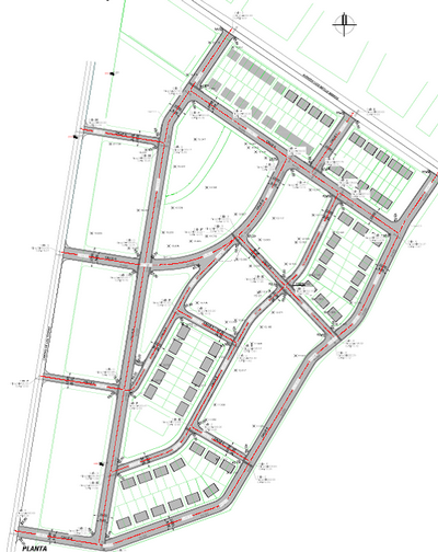 Proyecto ejecutivo de la infraestructura vial. Incluyó diseño de la planimetría de las calles, altimetría, definición de intersecciones y definición de pavimentos.