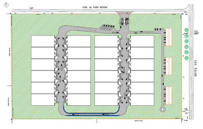 Proyecto ejecutivo de acceso sobre Ruta 5. Incluyó verificación de planimetría, altimetría, drenaje pluvial y definición de pavimentos.